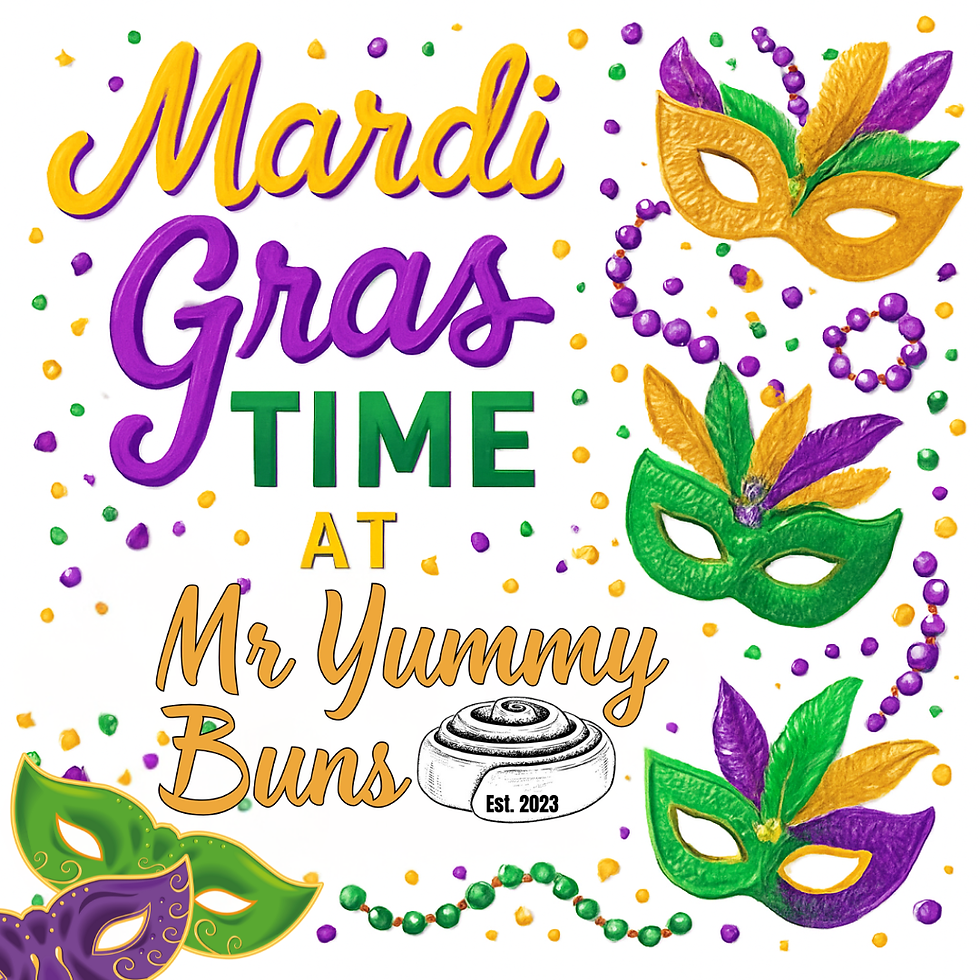 WEEKLY SCHEDULE: Looking for the flavors of Mardi Gras? Then make sure you check out our newest seasonal specialty buns this week! The Beignet Bun and the King Cake Bun are both BUNtastic! The King Cake Bun has a cream cheese filling and takes our cinnamon buns and creativity to an entirely new level! Here is where you can catch the Bun Man and his Bun Mobile this week: